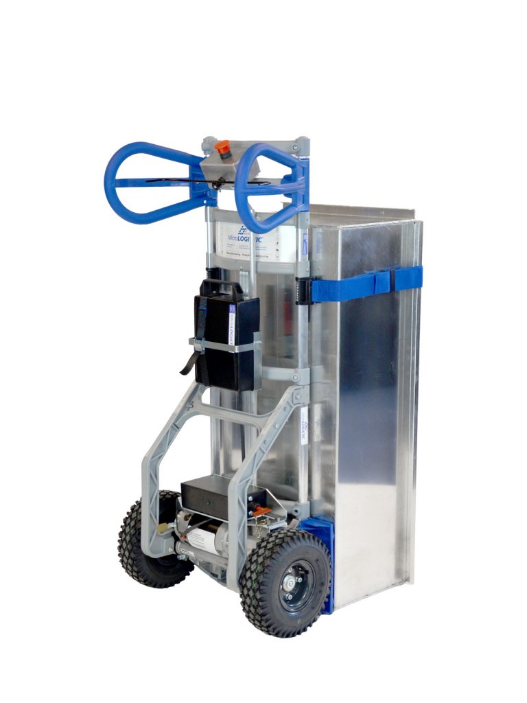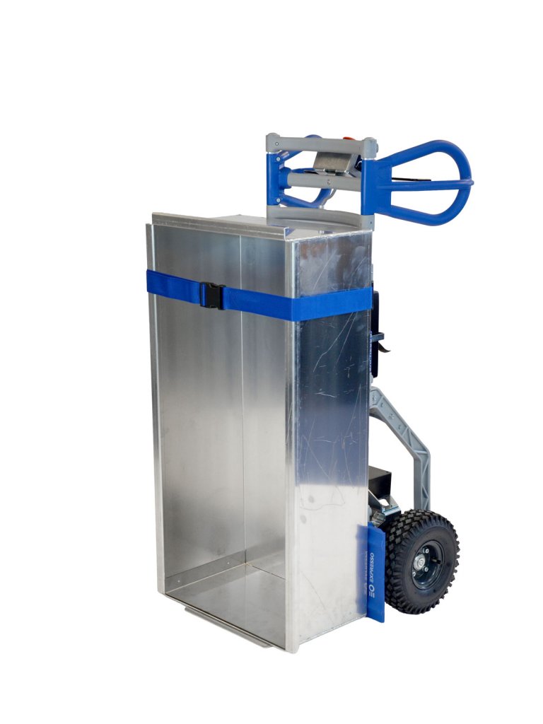 Denna låda togs ursprungligen fram för att möta ett konkret behov hos kommuner och avloppsföretag som behövde transportera tunga pumpar och utrustning i svår och brant terräng. Resultatet är en robust och praktisk lösning som förenklar hanteringen av otympligt gods, särskilt i kombination med pirran Arninge med eldrift och våra elektriska trappklättrare.