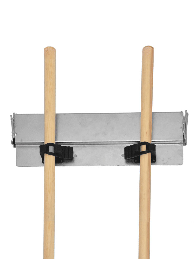 Konsoll med två gummifästen. En smart hållare för sopborste eller skyffel. Konsollen fäster du enkelt i lastskenan på flaket. Vår fästen är i mjuk slagtålig gummi som inte går sönder när (inte om) du råkar slå till eller köra in i de.