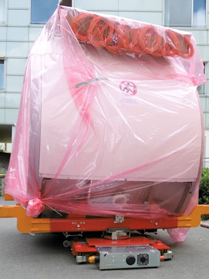 Systemet är uppbyggt av två enheter: en motoriserad och fjärrstyrd L-ROBOT samt en icke-driven maskinskridsko (F-ROBOT) som kan justeras i bredd för att matcha lastens mått. Kombinationen ger en stabil 3-punktslösning som gör det möjligt att flytta maskiner upp till 20 ton med hög precision och full kontroll. Operatören styr rörelsen proportionellt och kan rotera L-ROBOT på plats under belastning, vilket förenklar exakt positionering i produktion och verkstad.