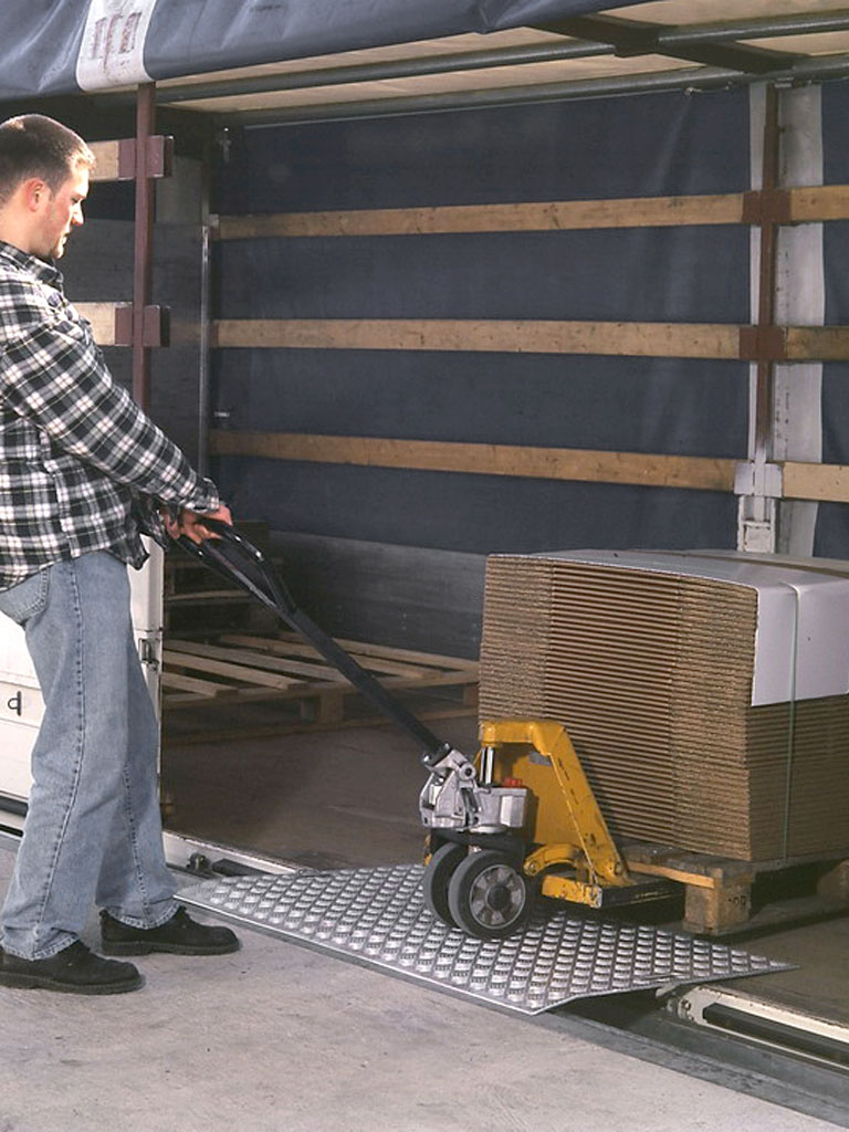 Rampen passar både professionella och mindre transporter och kombinerar låg vikt med stabilitet och säkerhet. Den är väderbeständig, enkel att rengöra och kräver minimalt underhåll. För extra trygghet har rampen anslagsvinklar som förhindrar att den glider under användning, vilket gör den till en pålitlig lösning i många olika miljöer.
