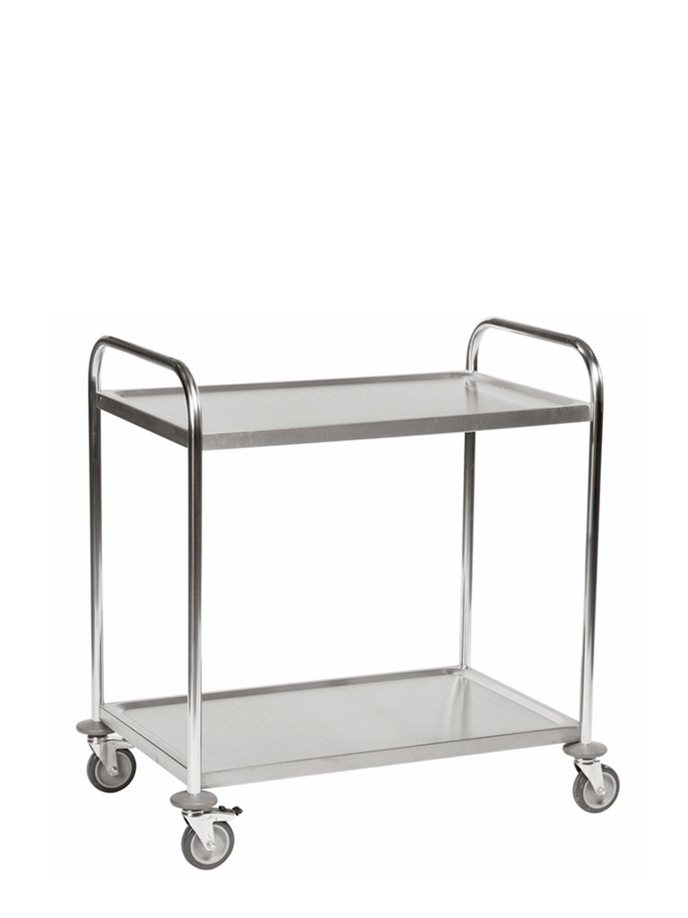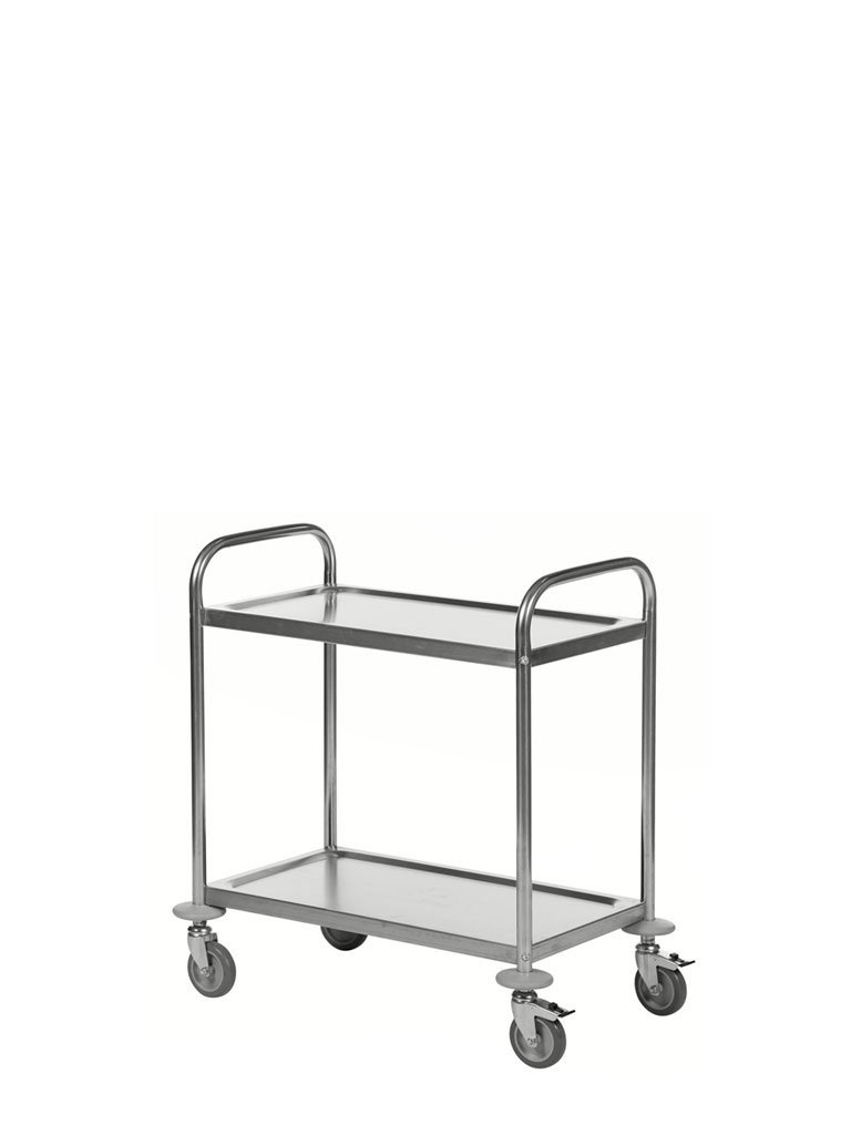 En robust och prisvärd bordsvagn i rostfritt stål, utrustad med två hyllplan för smidig transport av verktyg, utrustning eller andra typer av material. Tillverkad i rostfritt stål klassat enligt ISO 9223:s korrosivitetsklass C2 – ett bra val för torra inomhusmiljöer som lager, verkstäder eller kontorsmiljöer där behovet av rostfritt finns, men där kraven på korrosionsbeständighet är måttliga.